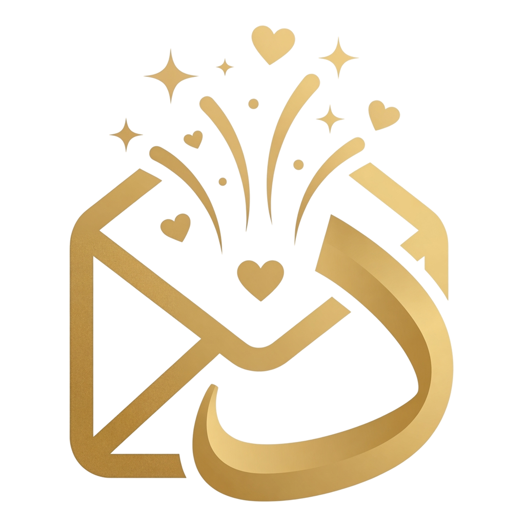 رسالة أنيقة مع رابط قصير يحتوي على صفحة الدعوة التفاعلية للضيوف.